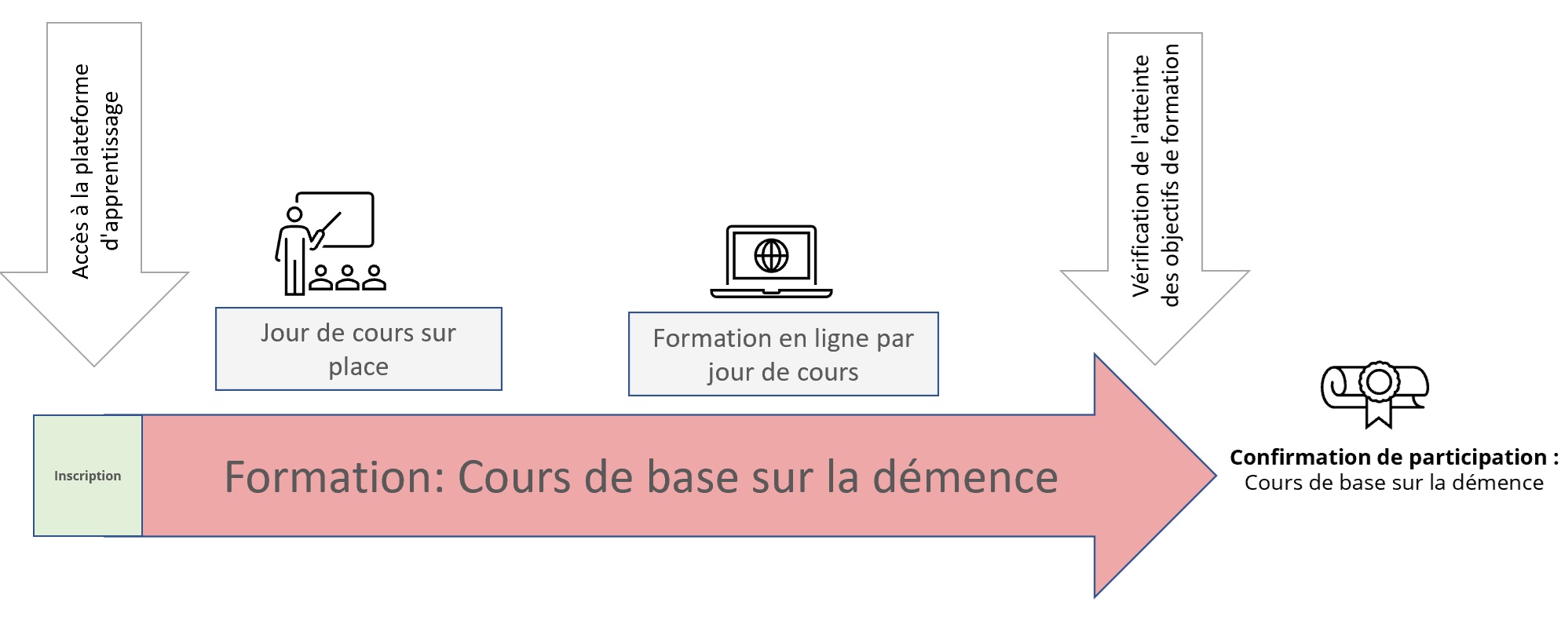 Le cours de base sur la démence fournit des connaissances de base sur la manière de prendre en charge des personnes souffrant de démence ainsi que leurs proches. En plus du contenu théorique sur les différentes formes de démence, vous apprendrez comment prendre en charge en toute sécurité les personnes atteintes de démence grâce à des nombreux exercices et exemples pratiques. Vous apprenez comment assurer la sécurité de toutes les personnes concernées, leur bien-être et la préservation de leur qualité de vie. En outre, nous vous montrons comment faire face à des situations difficiles et comment vous protéger contre la surcharge.